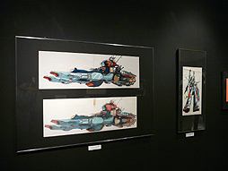 個人的に興味深かったのは,超時空要塞マクロスの前身「バトルシティ・メガロード」の各種メカニックデザインのセルである。アニメーションに登場するマクロスのシルエットこそ踏襲しているものの,細部のデザインはかなり異なり,ディテールも非常にシンプルなのが印象的だった。こういった歴史をうかがい知れる展示が見られるのは,新旧どちらのファンにとっても喜ばしいことだろう。