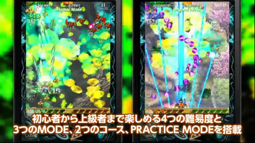 弾数少なめの【オリジナル】モードから【マニアック】モード、弾幕数MAX の【ウルトラ】モードまでの3種類のゲームモードを用意!更に、【NOVICE】【NORMAL】【HARD】【HELL】の4種類の難易度選択が可能で、シューティングゲーム初心者からコアなシューティングゲームユーザーまで誰でも『虫姫さま』の世界を楽しむ事ができます。