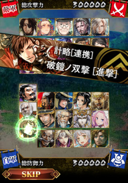 プレイヤーは,武将2枚と計略武将1枚を1セットとして,1撃目から5撃目までのデッキを設定。戦闘が始まると1撃目から順番に自軍のターン,相手のターンとなり,これを5回繰り返して最終的に自軍の力が相手を上回れば勝利となる。