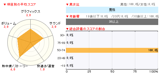 グラフィックス サウンド 快適さ/運営 熱中度/ストーリー ボリューム 3 3 1 4 3