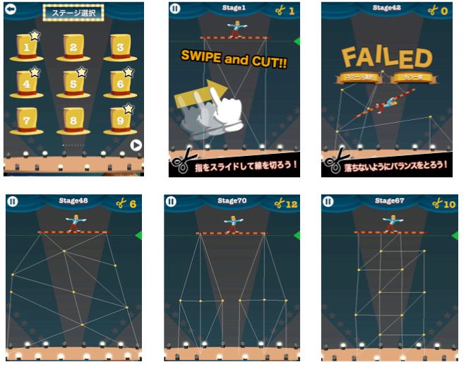 ステージは全部で72種類。iOS向けバランスゲーム「ギリギリ切り」が配信