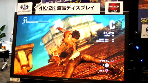 ![]() シャープ製4kディスプレイとRadeon HD 7850を接続して,4k解像度での体験プレイが実施された |