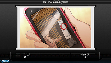 シナリオ中で手に入れた素材を検証し、次につながる鍵を見出す。画像であればVita前面のタッチパネルを使用し、フリック操作や選択などが可能。音声の検証であれば、気になる台詞のサーチ(頭だし)など直感的な操作に対応しています。