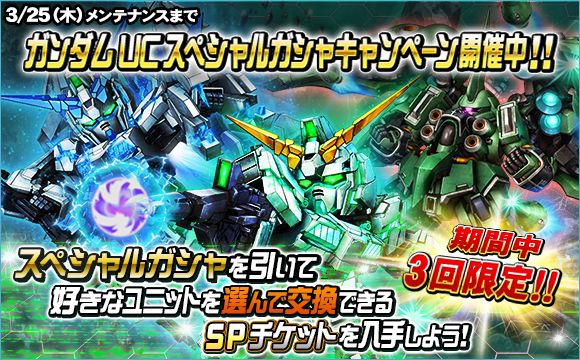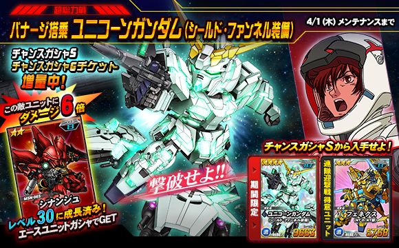 「SDガンダムオペレーションズ」で“バナージ搭乗ユニコーンガンダム(シールド・ファンネル装備)登場!”が開催