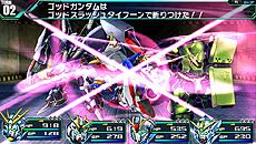 ゴッドガンダムが、スキル攻撃「ゴッドスラッシュタイフーン」で切り刻む!