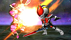 電王がソードフォームに変身してのスキル攻撃「デンライダーキック」! |