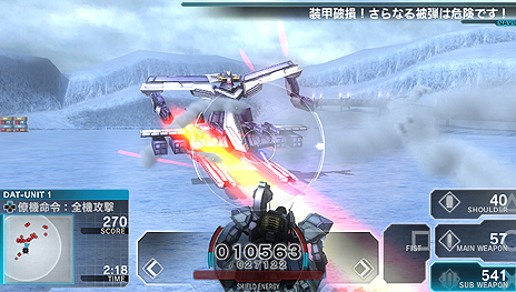 最大4機で部隊を編成して戦うことができる。僚機に作戦指示を出してミッションを攻略!! |