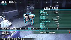 「開発ポイント」を使ってベース機体やパーツを強化。ベース機体を強化すると、耐久力やスロット数がアップするなど、戦闘を有利に進められるようになる。