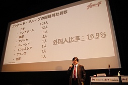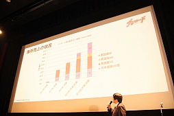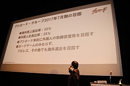 現在海外売上の状況は約20億円だが,2015年には40億円,将来的には100億円を目指すとのこと。ブシロード・グループの国籍別社員数なども公開された