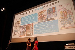11月8日にブースターパックが発売され,正式サービスがスタートとなる「ファイブクロス」では,初回製造分限定の特製ボックスが紹介されたほか,第1回ショップ大会の開催や,徳井さんと新田恵海さんがMCとして登場するニコニコ生放送の番組情報が明らかにされた。