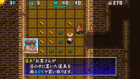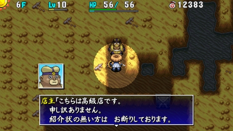 アイテムが欲しければお店で購入することになるが…。紹介状を持っていないと入れない高級店が出現しやすいのもこのダンジョンの特徴。 |