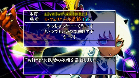 Twitterとの連携機能は,ダンジョン内で倒れたプレイヤーを助ける