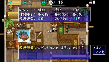 冒険を始め、ボロンガ村の救助隊支部からからダンジョンに入り、救助に向かおう。ダンジョン内のどこかにいる依頼人を見つけられるかな!? |