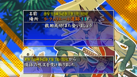 救助に成功したら、風来救助メニューの「救助する」で「復活の呪文を送る」を選び、依頼人に復活の呪文を送ろう。復活の呪文にメッセージを付けることもできるぞ! |