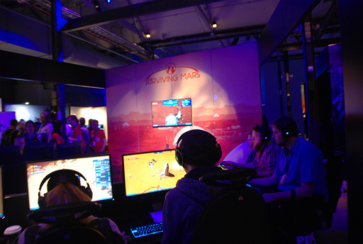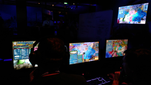 メインステージに隣接するブースコーナーでは,多数の試遊台が用意されており,気になるゲームを心ゆくまでプレイすることができた。なかには「Hearts of Iron IV」のポーランドや「Europa Universalis IV」のウルムなど,「(なぜか)人気のある中小国」を指揮するスコアアタック企画も行われており,腕に覚えのあるプレイヤー達が順位を競っていた。