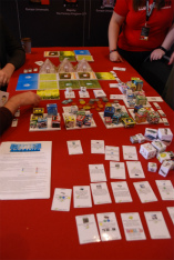 ちなみに,ボードゲームコーナーの壁面には来場者が自国の国旗のところにシールを貼ったり,好きなゲームの感想を書いたりできるようになっていた。筆者が数えたところ,19日の時点で5大陸,40か国からファンが集ったようだ。北欧諸国をはじめ,イギリスやアメリカ,オーストラリアなどの英語圏が多かった印象だが,もちろんアンケートに回答していない人も多く,実際の参加国はもっと多いと考えられる。