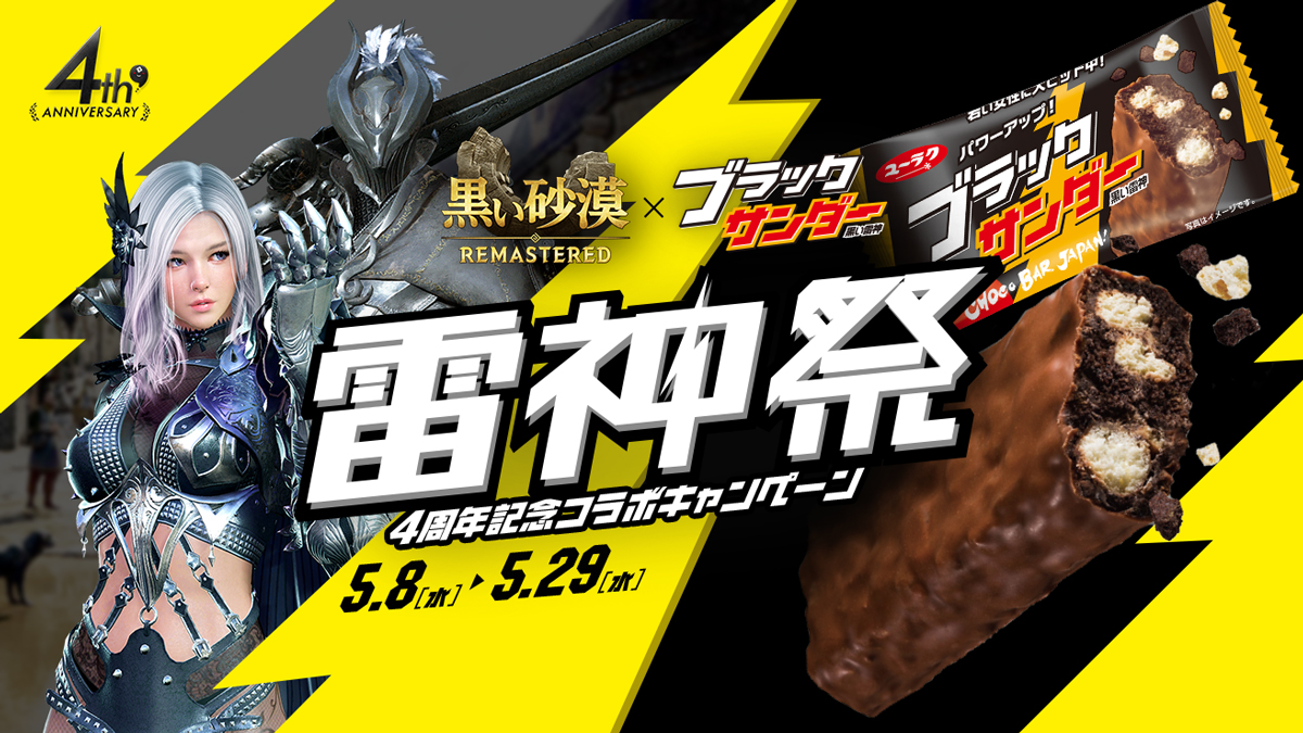 「黒い砂漠」,人気チョコレート菓子「ブラックサンダー」とのコラボキャンペーン「雷神祭」を開催
