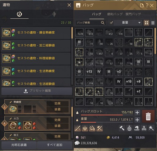 例えば,2022年3月に実装された「遺物」という装備は,いろいろなビルドを作ることができる新たな装備部位だが,「既存のバッグに遺物がどんどん増えて困る」というプレイヤーの声が多かった。その後,5月には遺物専用のバッグが追加され,その中に収納できるように改善されている。