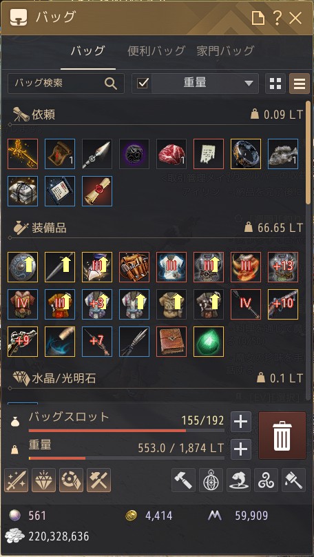 黒い砂漠が長期的には何をするゲームなのか?というと,「お金を稼ぐゲーム」だと思う。強い装備などのアイテムのために,取引所でお金を出して買う必要があるからだ。これはソロプレイヤーもギルドなどに所属するプレイヤーも変わらず,逆に言えばソロプレイヤーでもコツコツお金を貯めれば,最高クラスのアイテムを購入できるのだ。