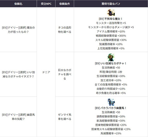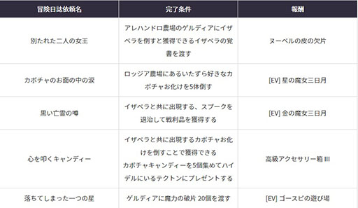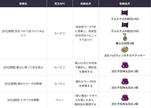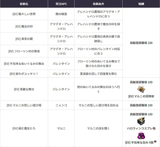 イベント期間中、「マルニの怪しい遊び場」がオープンされます。ここではハロウィンに関する様々な依頼を受託することができ、依頼を完了すると様々な報酬がもらえます。これを機に是非プレイしてみてください。