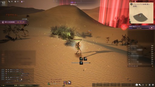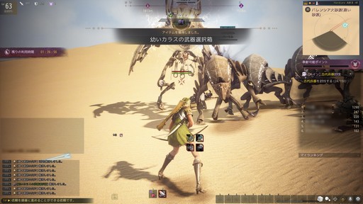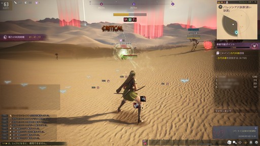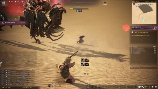 ハードコアチャンネルでは「依頼」を1日1つだけ受けられる。初日は砂漠のあちこちにいる「古代兵器」を規定数倒すことが目標になる。