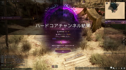 ハードコアチャンネルは,専用のキャラクターを作って参加する新しいPvPvEコンテンツで,モンスター討伐依頼を完了して獲得する「依頼ポイント」と,モンスターやほかのプレイヤーを討伐して獲得する「生存ポイント」を集め,2時間以内に「奉献」という形で精算することが目標となる。ざっくり言えば「ポイントを稼いで脱出するゲーム」である。
