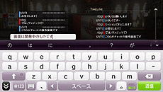 PS Vitaの前面タッチスクリーンを上にフリックするとソフトキーボードが出現して入力が可能になります |