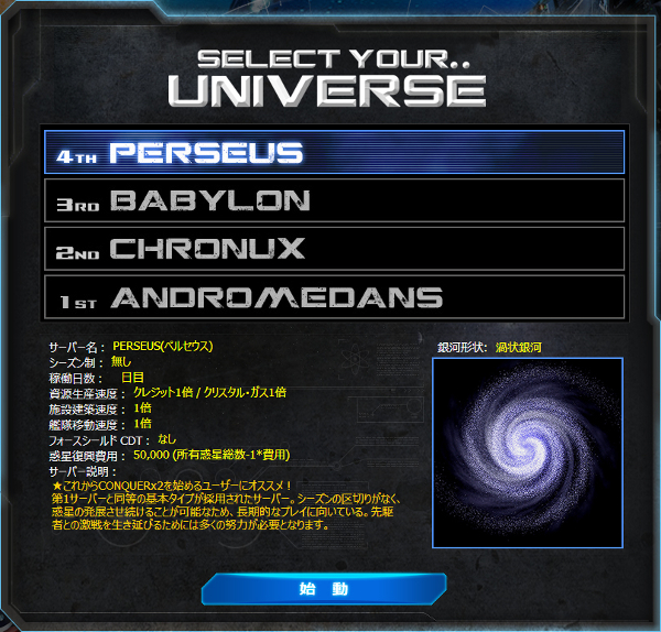 「CONQUERx2」,新たに第4のサーバー「PERSEUS」を7月16日にオープン