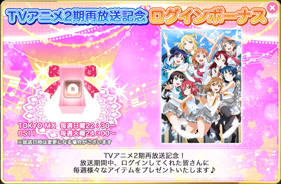 「ラブライブ!スクフェス」,「サンシャイン」2期の再放送を記念したログインキャンペーンが開催