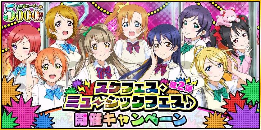 「スクフェス」のユーザー数が全世界で5000万人を突破。記念のミュージックフェス第2弾が開催決定
