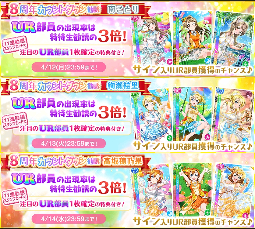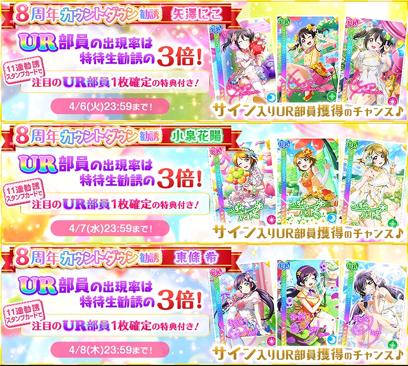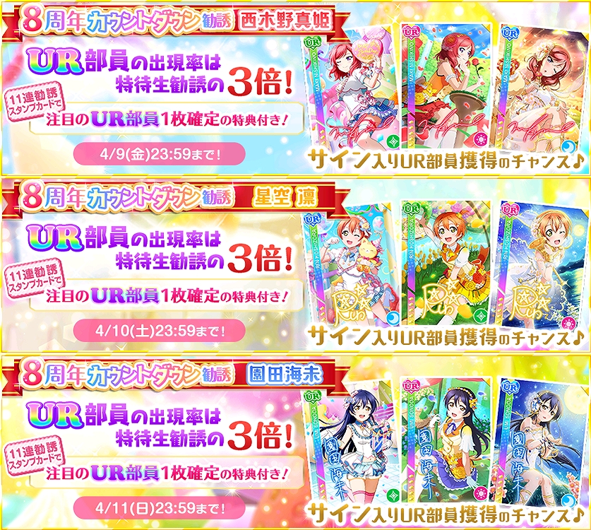「ラブライブ!スクールアイドルフェスティバル」で“8周年カウントダウンキャンペーン”が開催