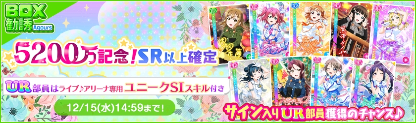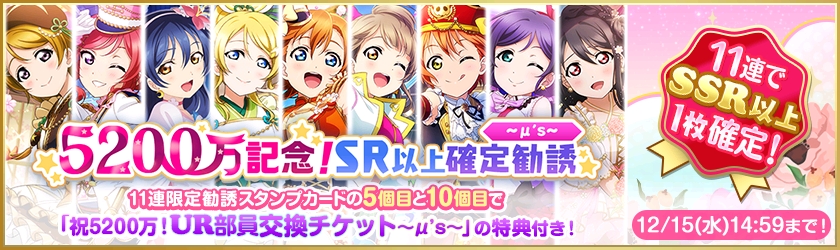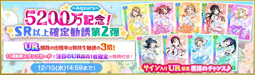 「ラブライブ!スクールアイドルフェスティバル」で全世界ユーザー数5200万人突破キャンペーン第2弾が開催