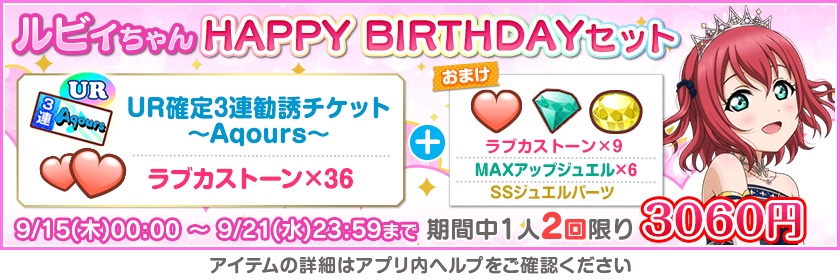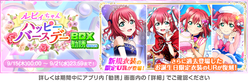 「スクフェス」,“Aqours黒澤ルビィ誕生日記念キャンペーン”を9月21日から開催