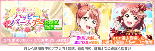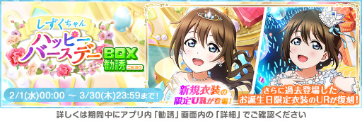 (C)2013 プロジェクトラブライブ!(C)2017 プロジェクトラブライブ!サンシャイン!!(C)KLabGames(C)bushiroad All Rights Reserved.