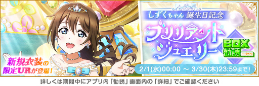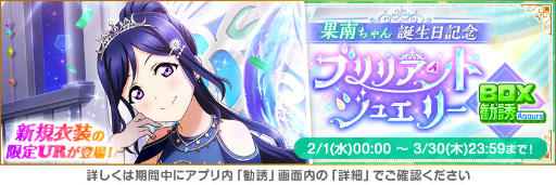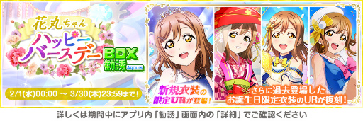 株式会社ブシロード(本社:東京都中野区、代表取締役社長:木谷高明)は、KLab 株式会社(本社:東京都港区、代表取締役社長:森田英克)と共同開発いたしましたスマートフォン向けアプリ『ラブライブ!スクールアイドルフェスティバル』(以下、スクフェス) においてスクフェス大感謝祭誕生日キャンペーンの開催をお知らせいたします。