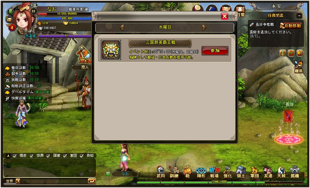 「快傑三国志」,三国群英覇王戦の定期開催日が水曜日と日曜日に