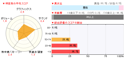 グラフィックス サウンド 快適さ/運営 熱中度/ストーリー ボリューム 5 3 1 1 1 -