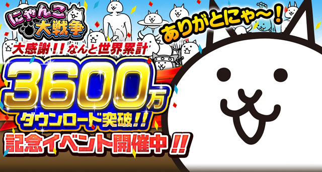 「にゃんこ大戦争」,3600万DLを突破。毎日ネコカン20個プレゼントキャンペーンを開催