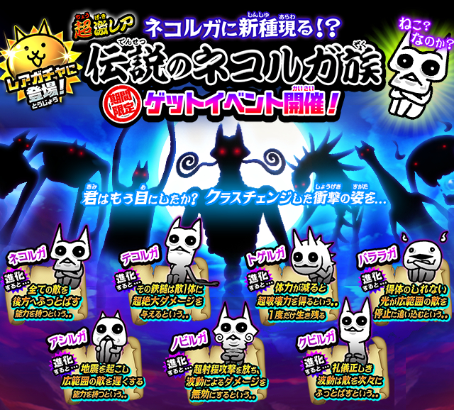 「にゃんこ大戦争」,新キャラ「ノビルガ」が登場する期間限定レアガチャ“伝説のネコルガ”が本日開催