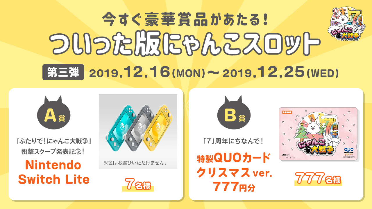 「にゃんこ大戦争」,「ついった版にゃんこスロット」第3弾と期間限定「クリスマスイベント」が本日より開催