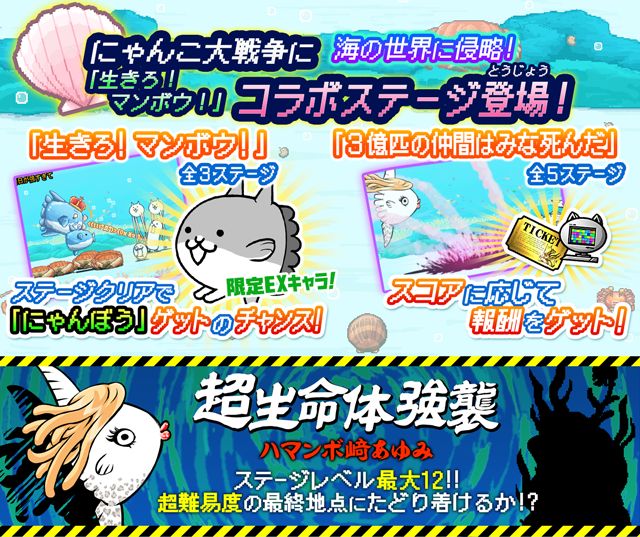「にゃんこ大戦争」で「生きろ!マンボウ!」とのコラボイベントが開催