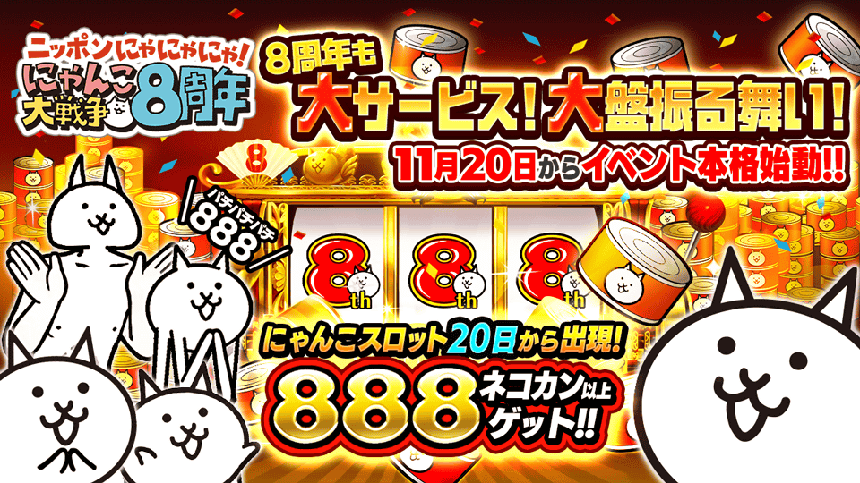 「にゃんこ大戦争」8周年記念イベントが11月20日から開催