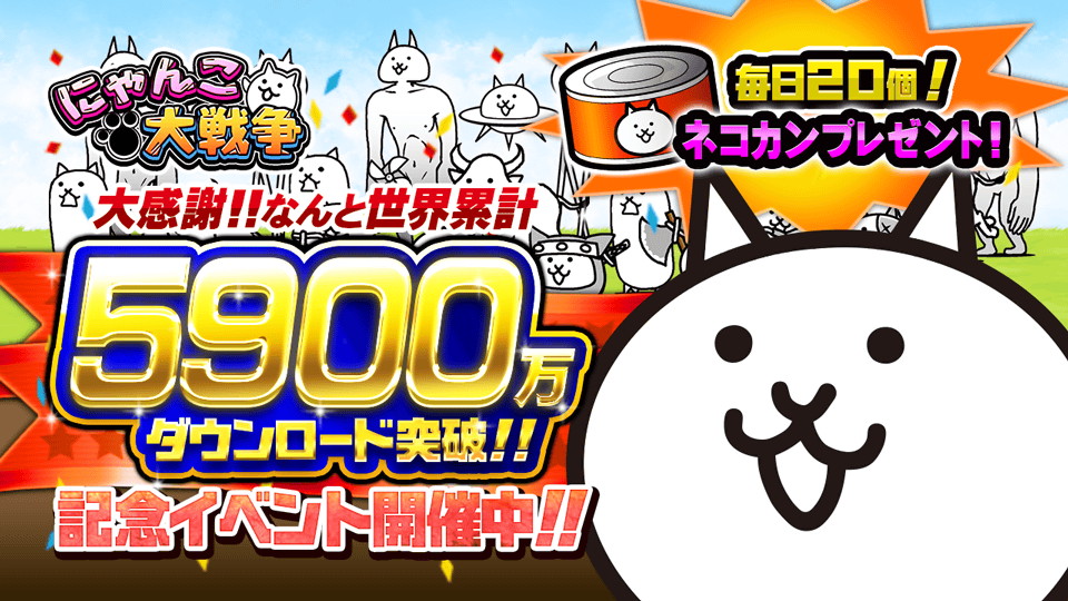 「にゃんこ大戦争」が5900万ダウンロードを突破。記念キャンペーン開催