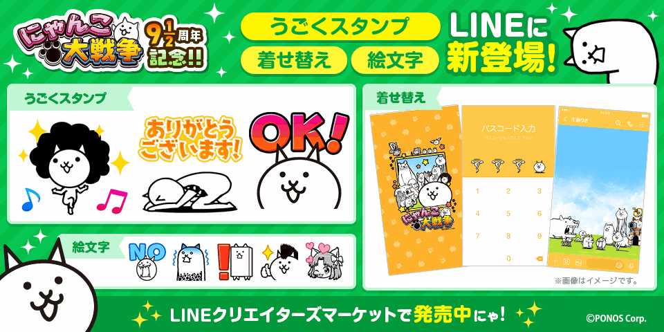 「にゃんこ大戦争」配信から9と1/2周年を記念して,LINEスタンプ・絵文字・着せ替えが販売に