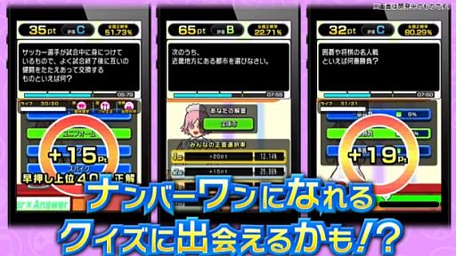 テレビでおなじみの早押しクイズを始めとするおなじみのクイズ形式で多彩なジャンルから出題される問題数は 10 万問以上、仲間と一緒に楽しめるフレンド機能も充実しており、誰もが楽しめる“国民的対戦クイズゲーム”となっています。通勤途中や休憩時間など、合間の時間で気軽に楽しんでいただけます。