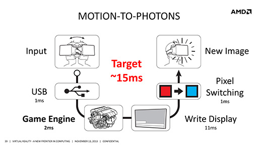 だが,“所要時間15ms以下”を実現するには,「Rift側だけでなくゲームエンジン側のメカニズムにも改良が必要になるだろう」と,Iribe氏は訴える。