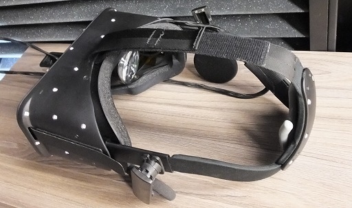 また,従来機では,左右を一周するベルトと上部を半周するベルトをそれぞれ調整する必要の会ったヘッドバンドは,後頭部でABS樹脂製のプレートで一つにまとめられ,左右のベルトはストレッチ素材になり,頭部への固定は上部のマジックテープだけで調節するという仕組みに進化した。これにより,以前のプロトタイプ機(具体的にはDevelopment Kit 2,以下DK2)とは比較にならないほど着脱しやすくなっていた。