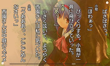 「CLANNAD」のシナリオを担当した「丘野塔也」の手がける切ないストーリーに、「さがのあおい」によるファンタジックなグラフィック、様々な演出が、物語を臨場感たっぷりに彩ります。
