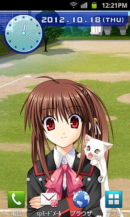 「リトルバスターズ! 棗鈴」、「CLANNAD 古河渚」、「AIR 神尾観鈴」の3種類を配信中! 時計機能付きで、時間帯にあわせて背景が変化、電池残量によって表情が変化します。 さらに、時々あの仲間達が遊びに来たり、いつ出会えるか分からない超レアキャラもいるかも!?