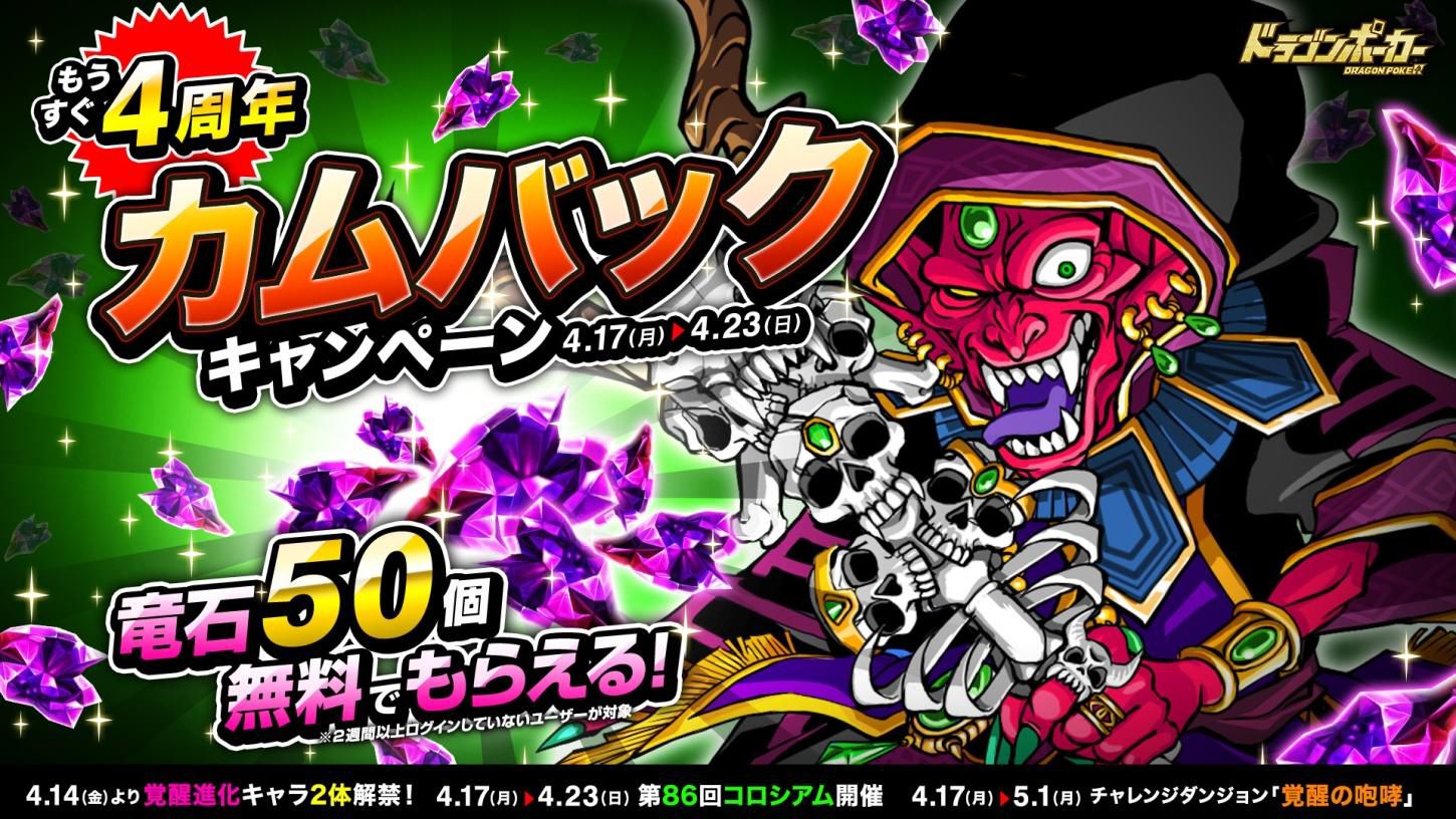 「ドラゴンポーカー」,もうすぐ4周年カムバックキャンペーンが開催